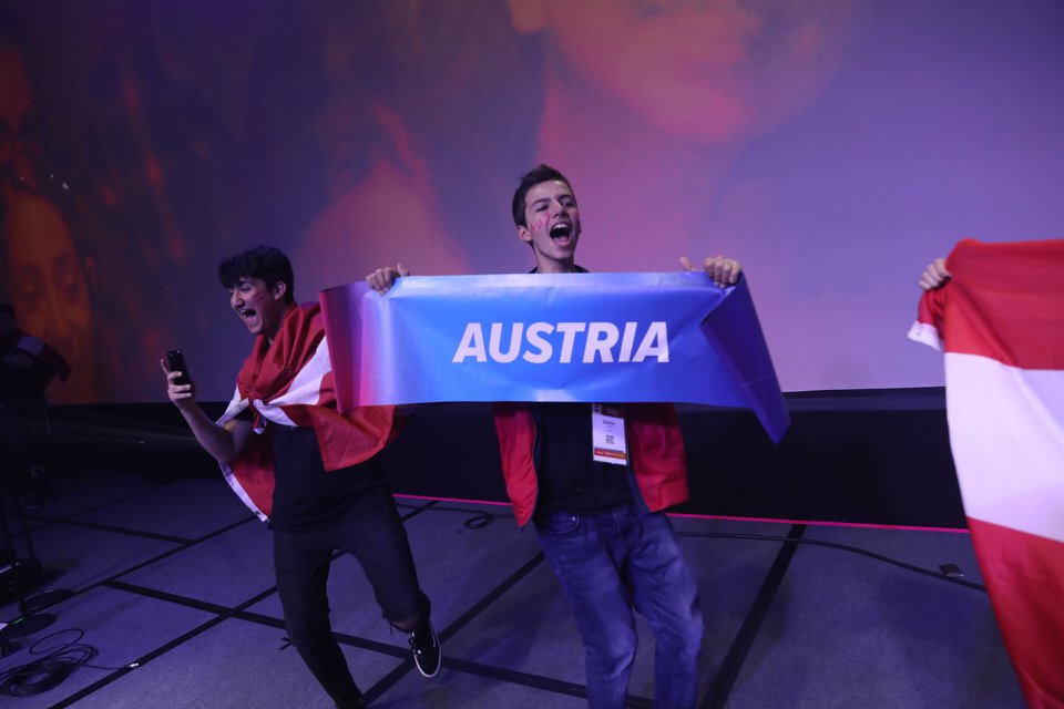 Group of people celebrating on stage