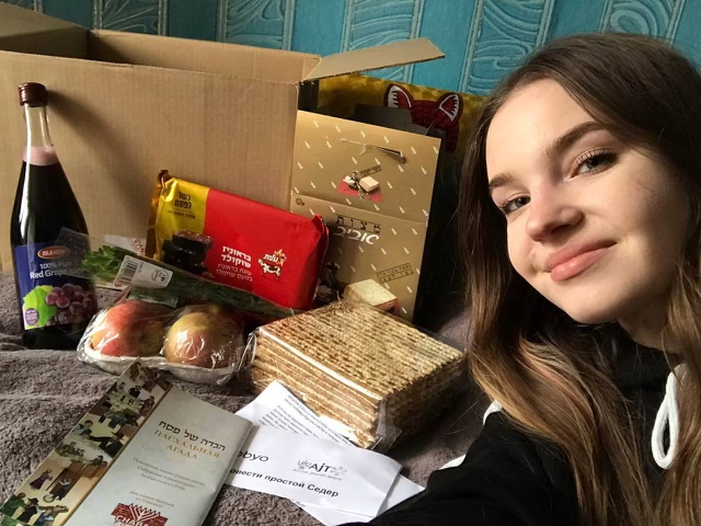 Each kit included Matzah, grape juice or wine, apples, lettuce, parsley, kosher for Passover sweets, some other essential items, as well as Russian Haggadot, a guide on how to run a Seder that we translated into Russian, and a note – also in Russian – from BBYO and JDC’s AJT to each family.